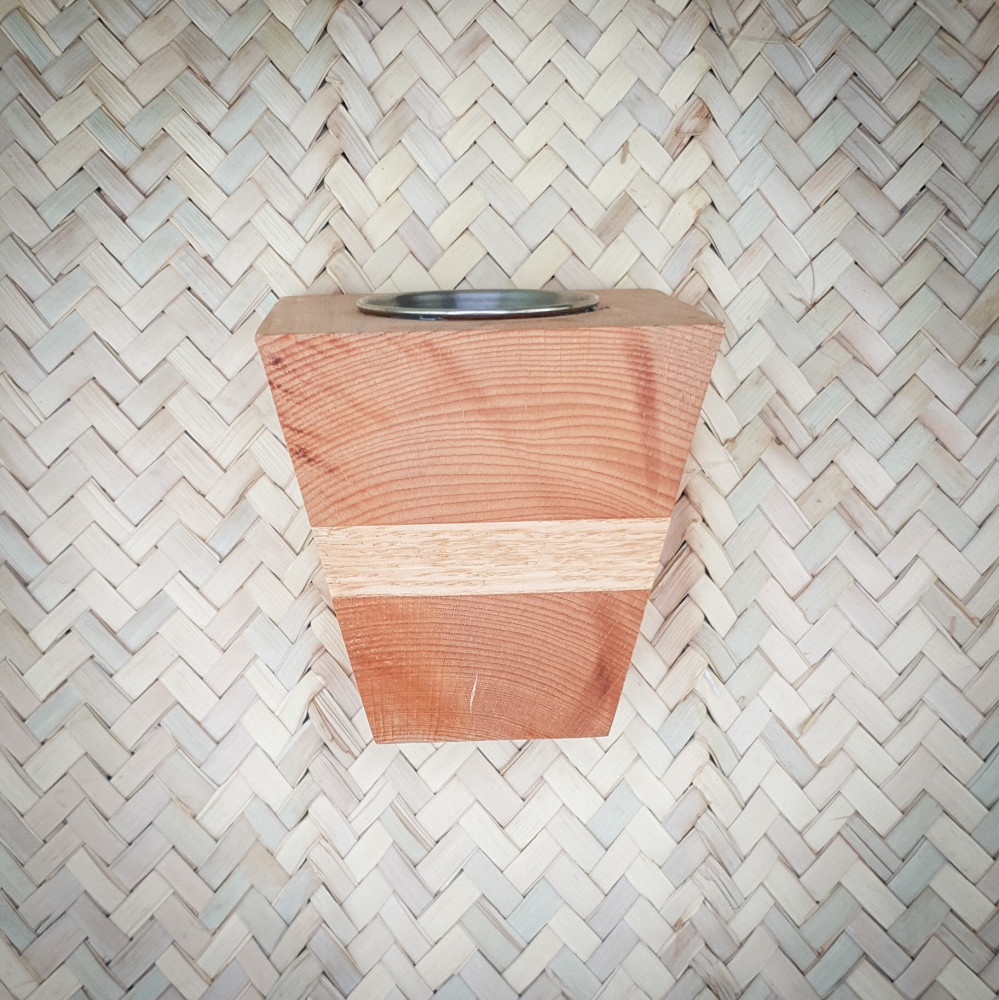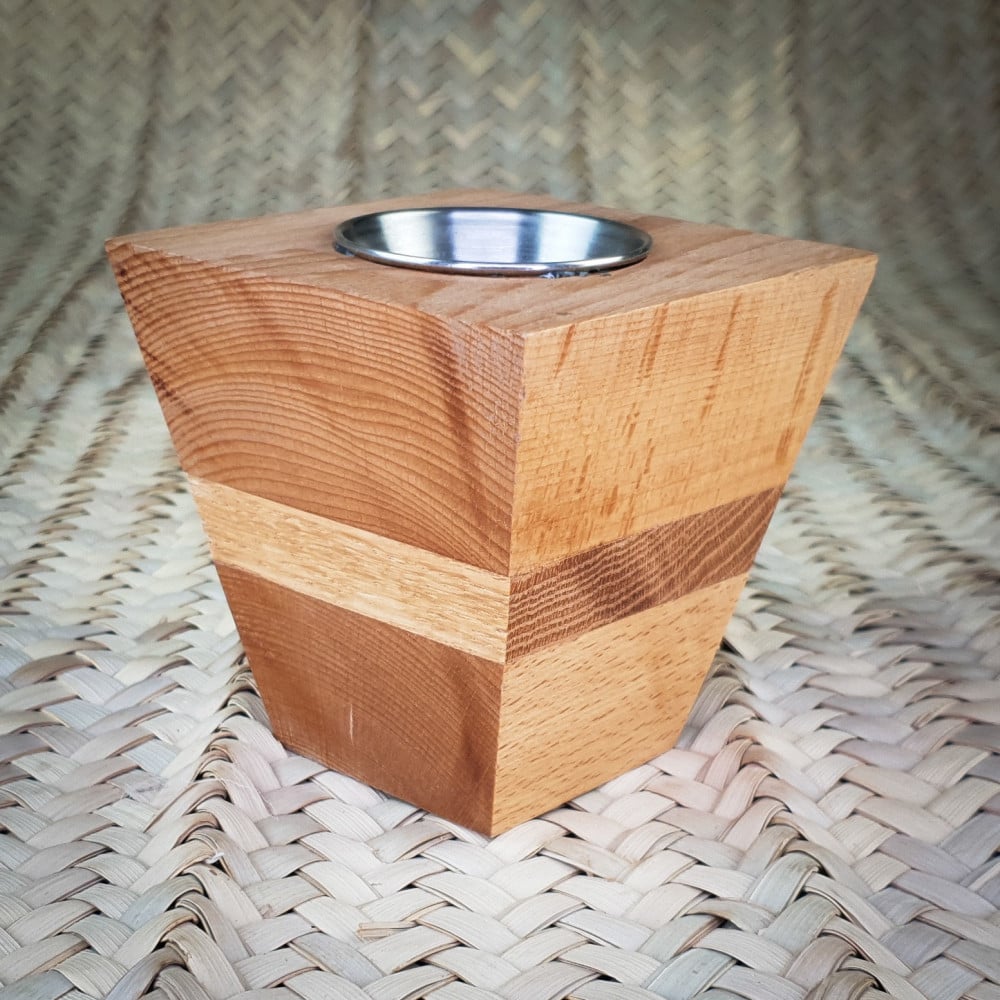 مبخرة خشبية بشكل هرم مقلوب مصنوعة يدوياً.