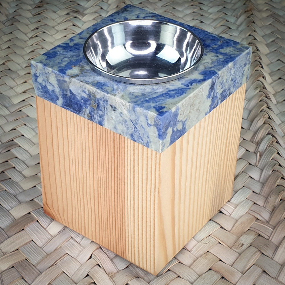 Made of pine wood and a piece of blue onyx marble.