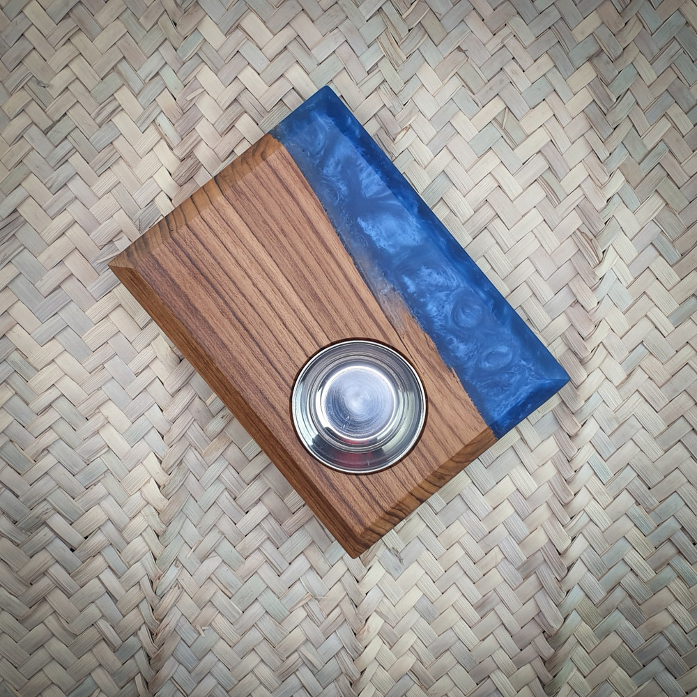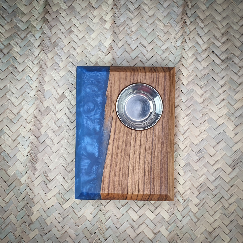 A rare piece of Indian teak wood, more than 150 years old, with blue resin added.